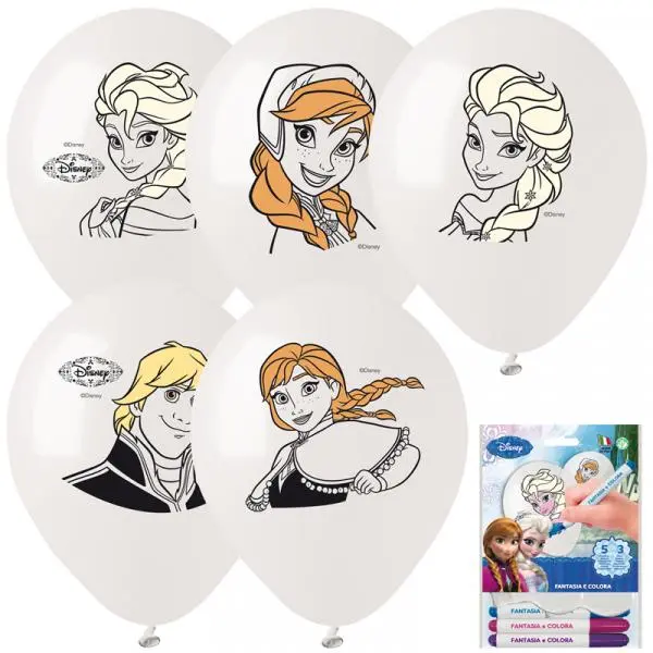 Kit de 5 ballons de baudruche à colorier avec 3 feutres.