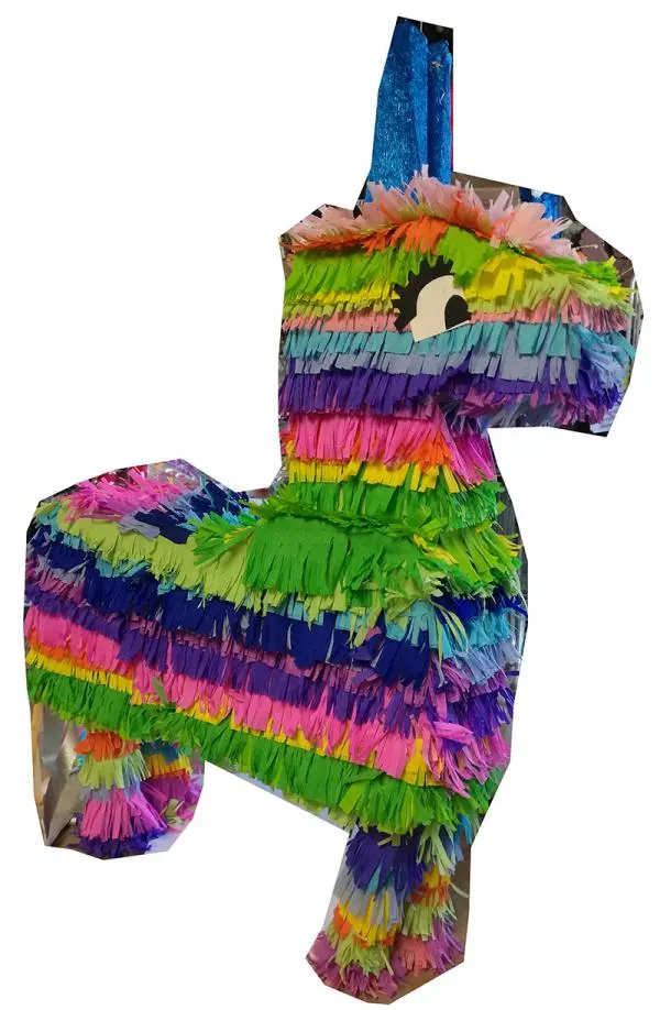 Piñata lama/âne de 60cm de hauteur, à remplir de jouets et/ou de bonbons . Une fois la pinata remplie, on la suspend, très jolie décoration, puis le moment venu, les convives essaient à l’aide d’un bâton (non inclus), de casser la pinata pour découvrir son contenu. Jeu traditionnel au Mexique