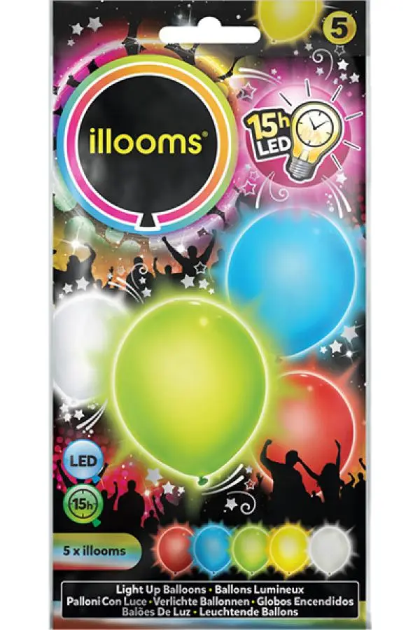 Sachet de 5 ballons a led unis 5 couleurs assorties